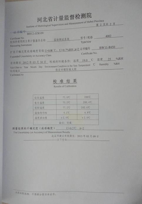 ·電熱恒溫鼓風(fēng)干燥箱校準(zhǔn)證書(shū)-河北計(jì)量院-長(zhǎng)城汽車(chē)