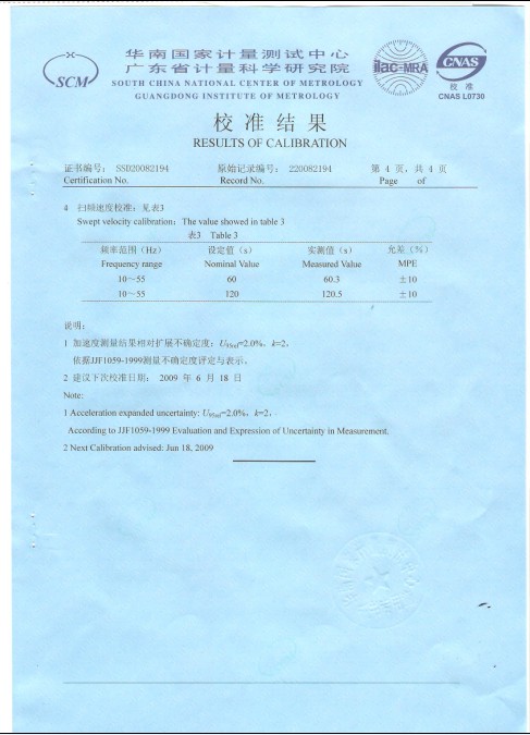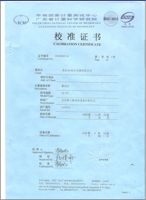 振動(dòng)試驗(yàn)臺(tái)校準(zhǔn)證書-廣東計(jì)量院-ABB集團(tuán)