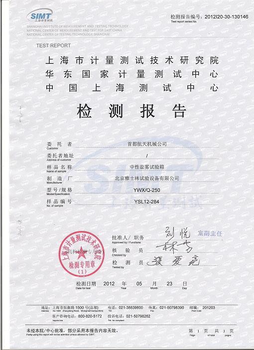 >>鹽霧腐蝕試驗(yàn)箱檢測報(bào)告-上海計(jì)量院-首都航天