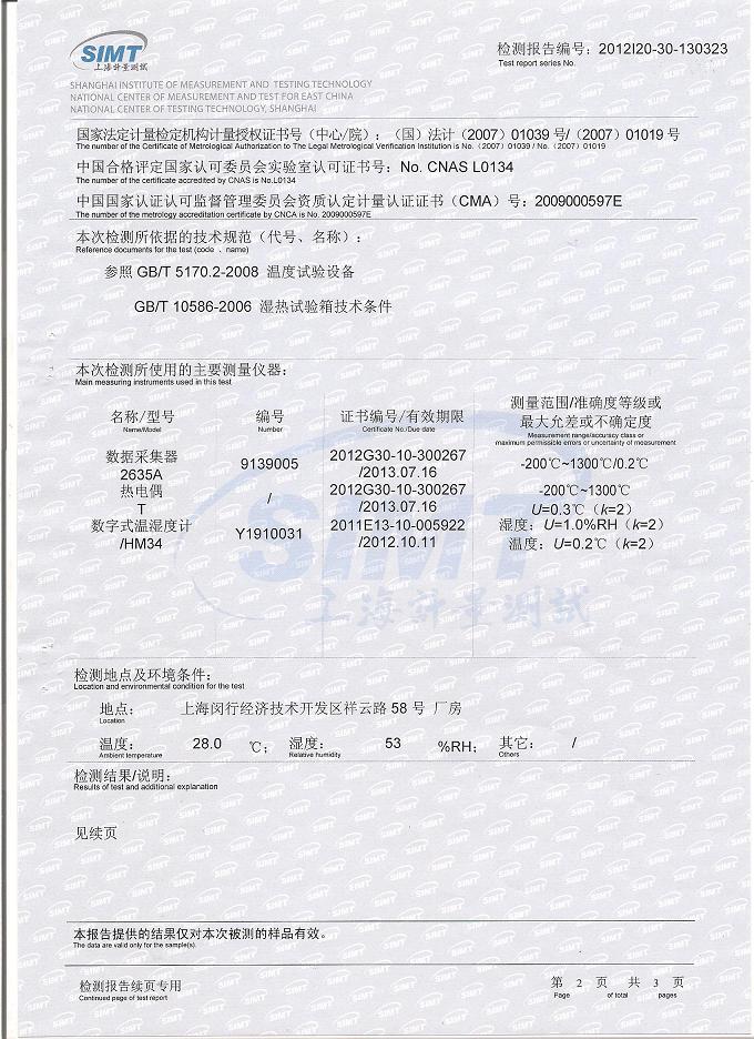 >>高低溫交變濕熱試驗(yàn)箱檢測(cè)報(bào)告-上海計(jì)量院-振華集團(tuán)