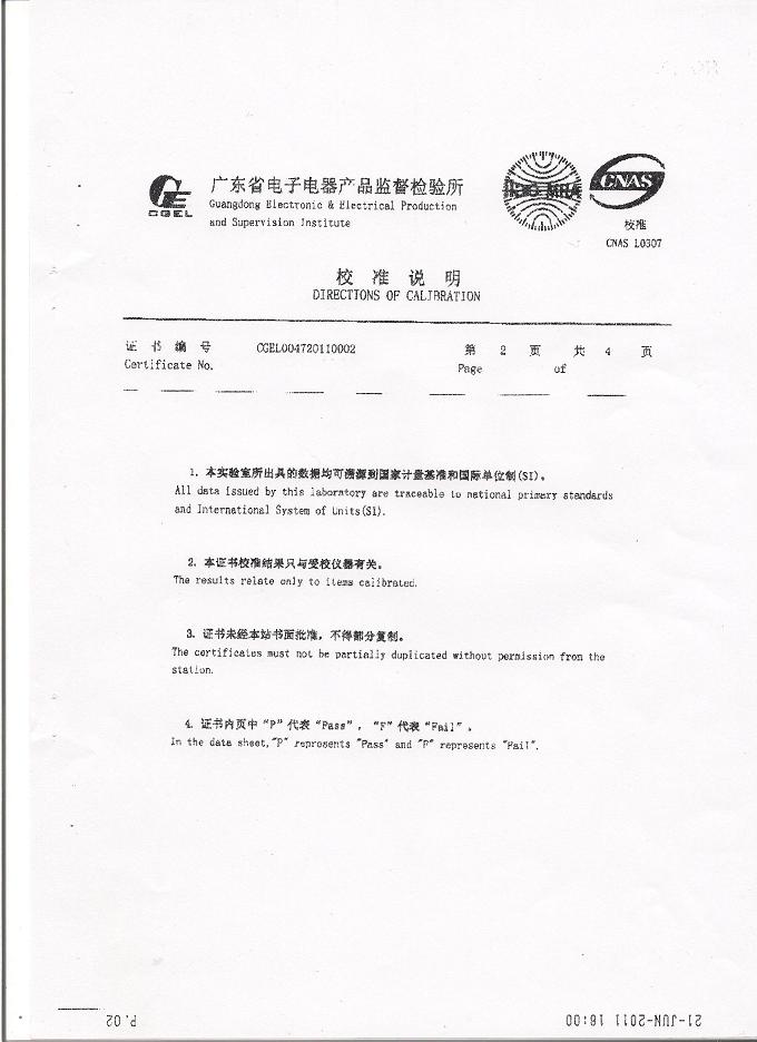 高低溫交變濕熱試驗箱校準證書-廣東檢驗所-萬家樂